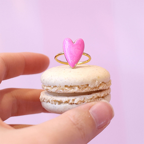 • Bagues en acier inox émaillées coeur Doré